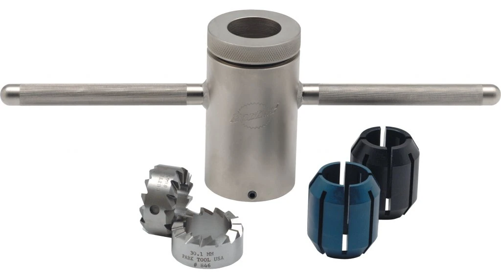 Outil de coupe de course de couronne. Pour garantir le bon fonctionnement du casque, le cône de fourche doit être fraisé avec précision. Grâce à son guide unique et réglable, le CRC-1 s’adapte à tous les 1″ et 1 1/8″ avec ou sans filetage, même avec des pivots à butée externe. Y compris plaquettes de fraisage 26,5 mm et 27,1 mm pour 1″ et 30,1 mm pour 1 1/8″.