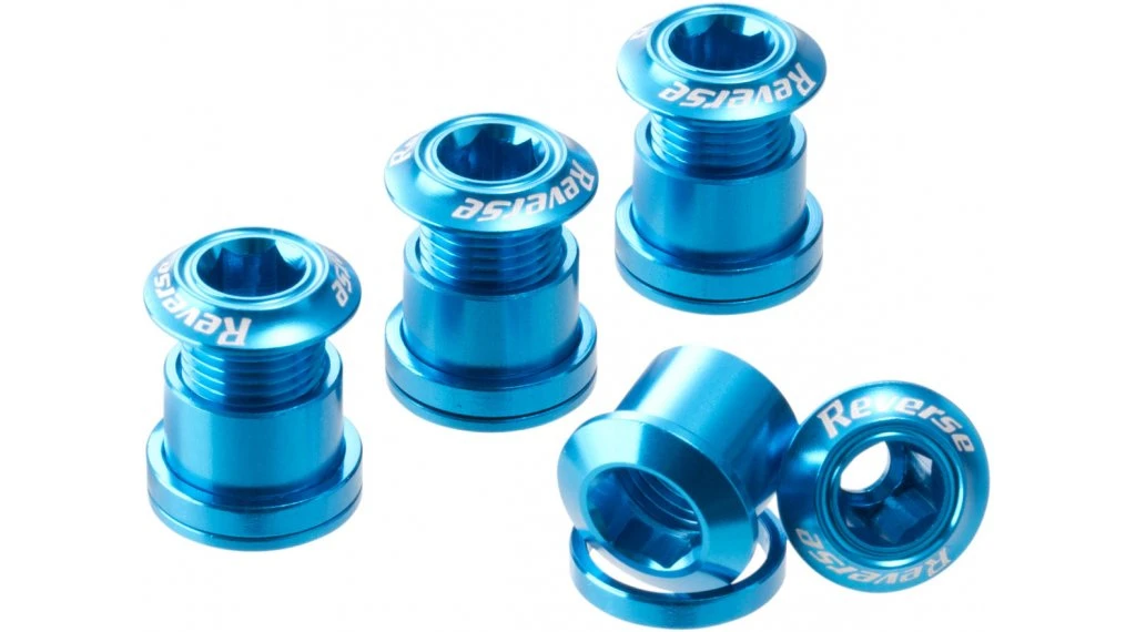 La manivelle peut être stylisée avec les boulons de plateau clairs et colorés de Reverse Components. La vente s’effectue soit en set (avec 4 vis de plateau dont quatre entretoises de 2,5mm) soit en pièce (une vis de plateau incluant une entretoise). Cela couvre une large gamme pour une grande variété de manivelles et de variantes de plateaux.
