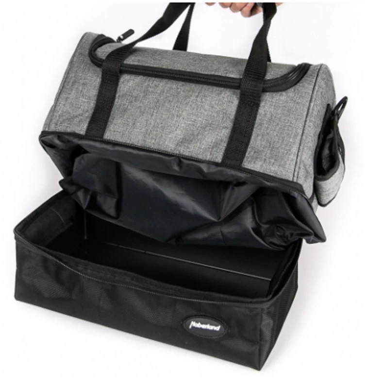 - Grâce à la fermeture éclair sur tout le pourtour du fond, la partie supérieure du sac peut également être rabattue sur le côté lorsqu’elle est fermée. Il est ainsi possible de remplir séparément le compartiment du fond sans ouvrir le compartiment principal.