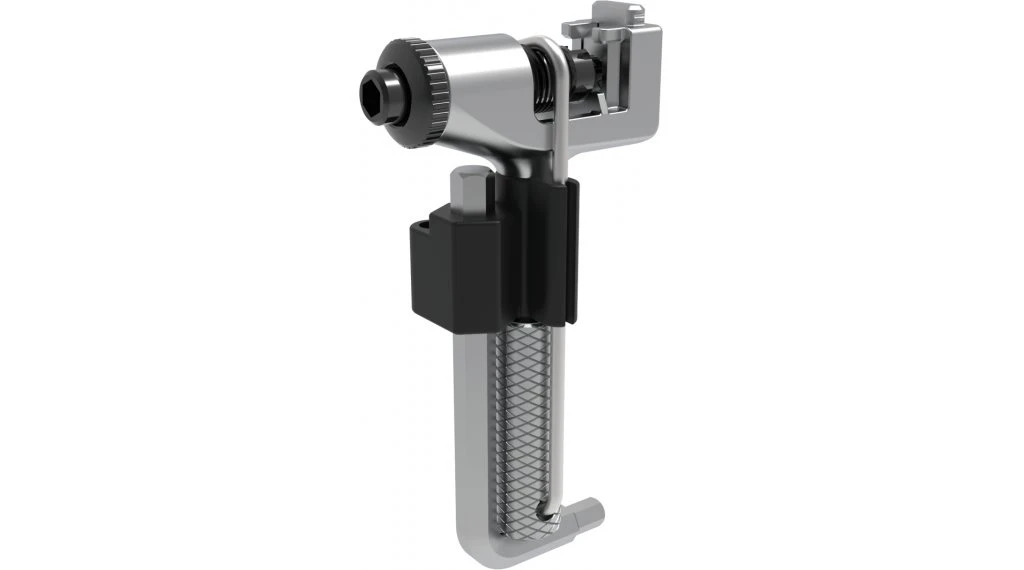 Outil de chaîne de haute qualité pour les chaînes à une et plusieurs vitesses jusqu’à 12 fois. NON compatible avec les chaînes à axes creux Campagnolo® 11 vitesses. Comprend des clés Allen® de 5 mm et 6 mm et des crochets de fixation de chaîne.